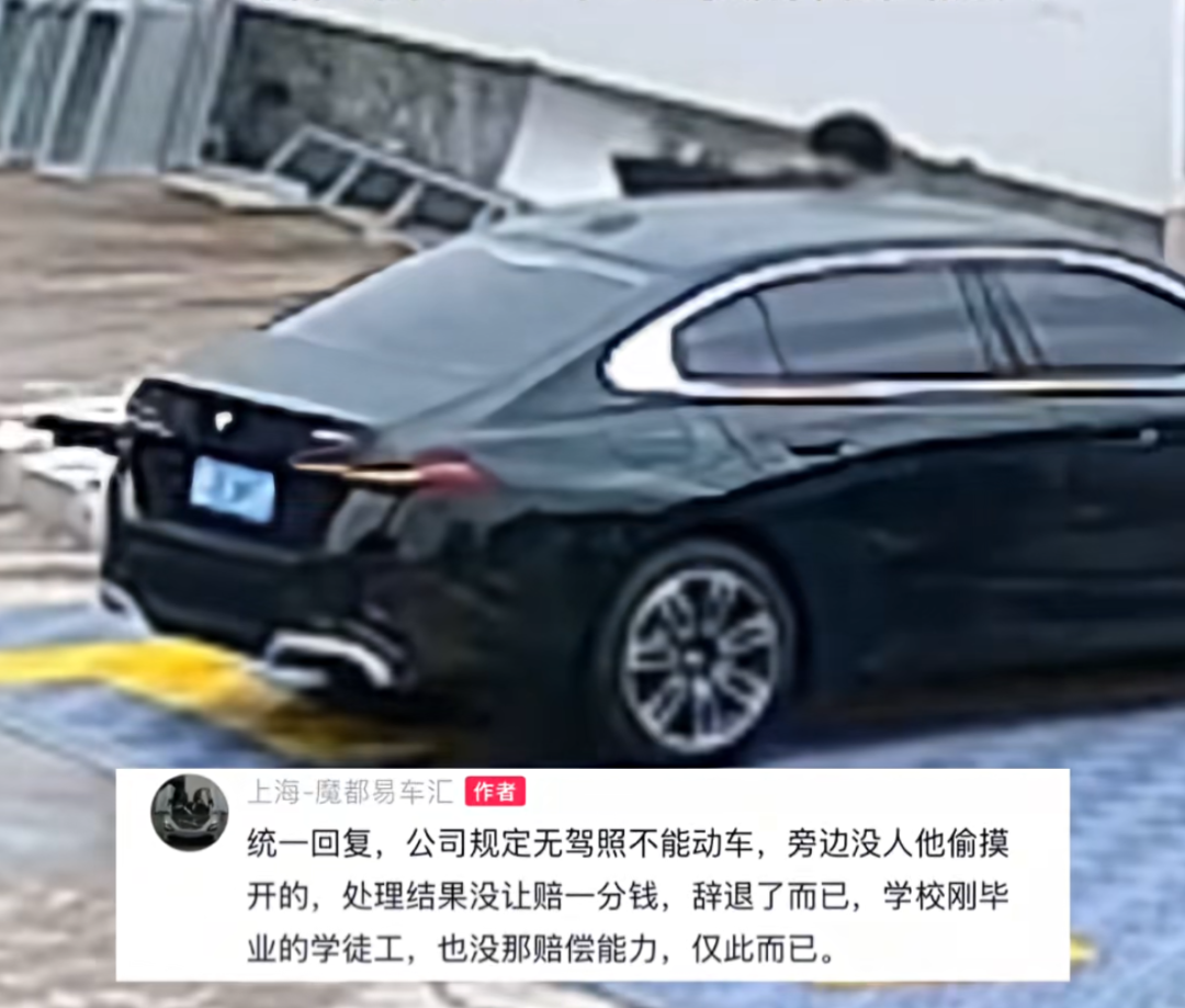公司回应涉事小伙是刚毕业的学徒工,没有驾照私自开车。因无赔偿能力,所以仅辞退了他,没有让赔一分钱。